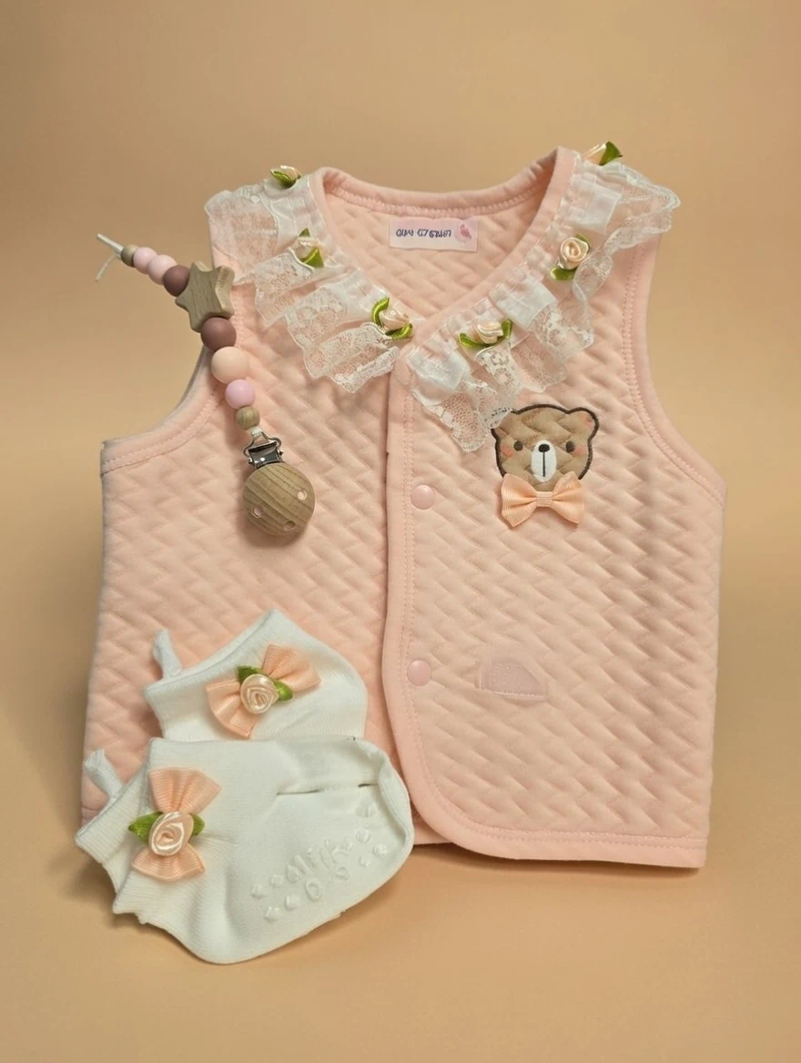 וסט עם צבעים רכים עם סיומת של תחרה ופרחים
