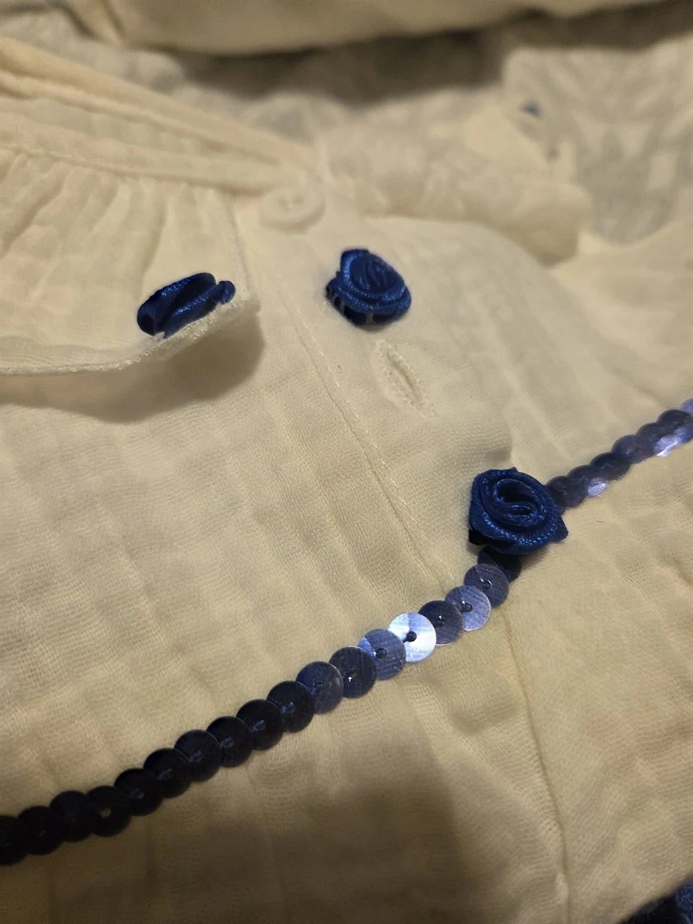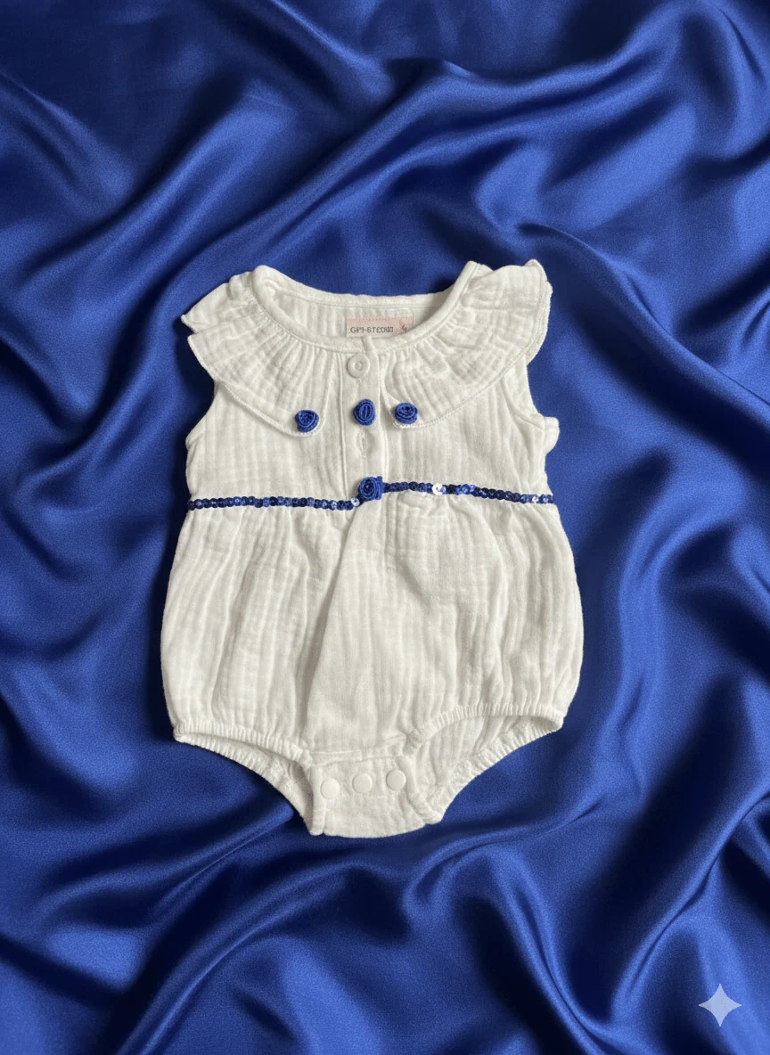 אוברול קייצי  לבן עם קישוטים כחולים